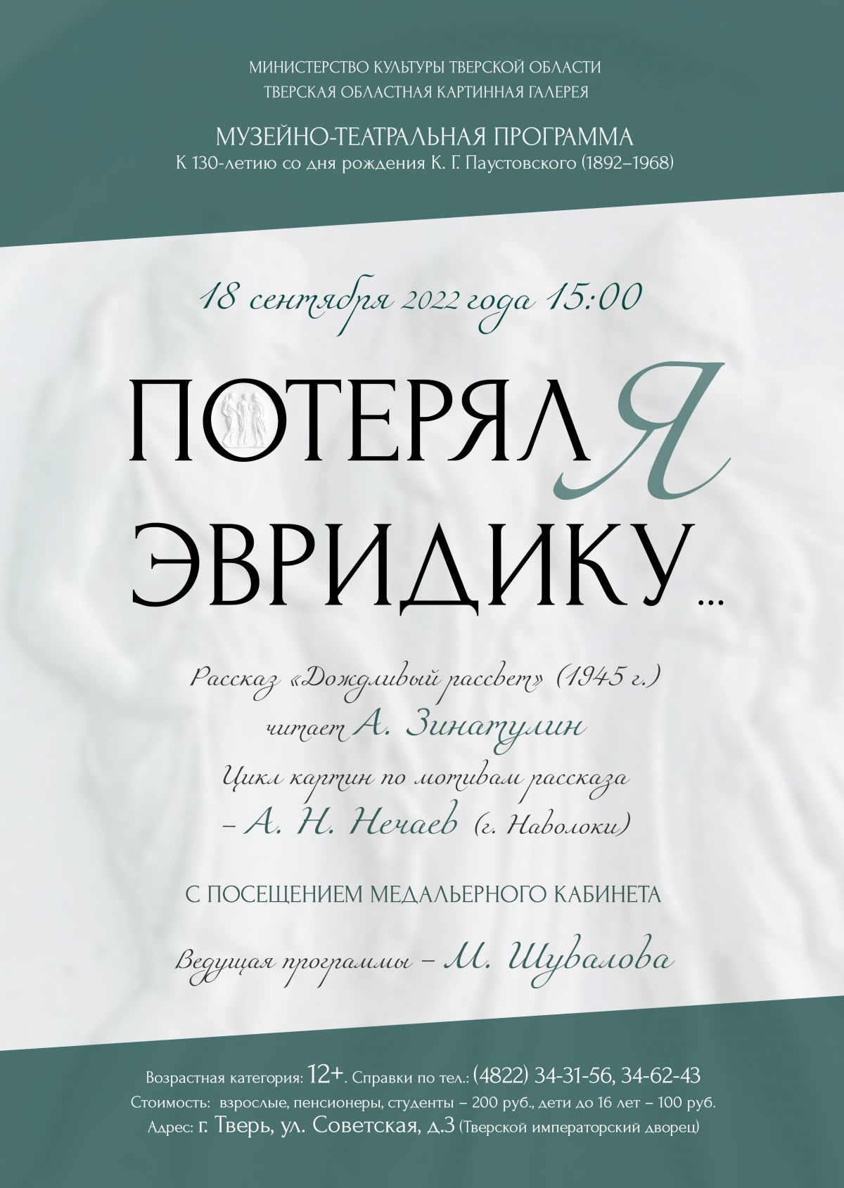 Особенностью программы станет обзор иллюстраций к рассказу Паустовского – от первого рисунка ленинградского графика Татьяны Шишмаревой (1905–1994) до цикла живописных работ Александра Нечаева, художника родом из волжского городка Наволоки, места действия «Дождливого рассвета».