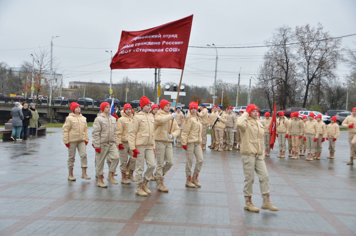 У Обелиска Победы торжественным маршем прошли парадные расчеты военно-патриотических объединений и юнармейцев Твери и Тверской области.