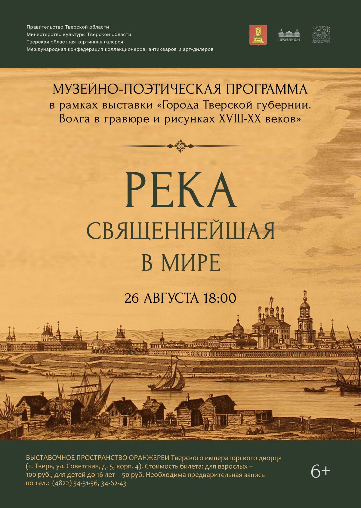 Участники музейно-поэтической программы смогут познакомиться с представленными в экспозиции произведениями искусства, а также послушать стихи о Волге Н.М. Карамзина, Д.К. Бальмонта, Н.А. Некрасова в исполнении тверских молодых поэтов и чтецов. Программу дополнит викторина с призами и памятными подарками.