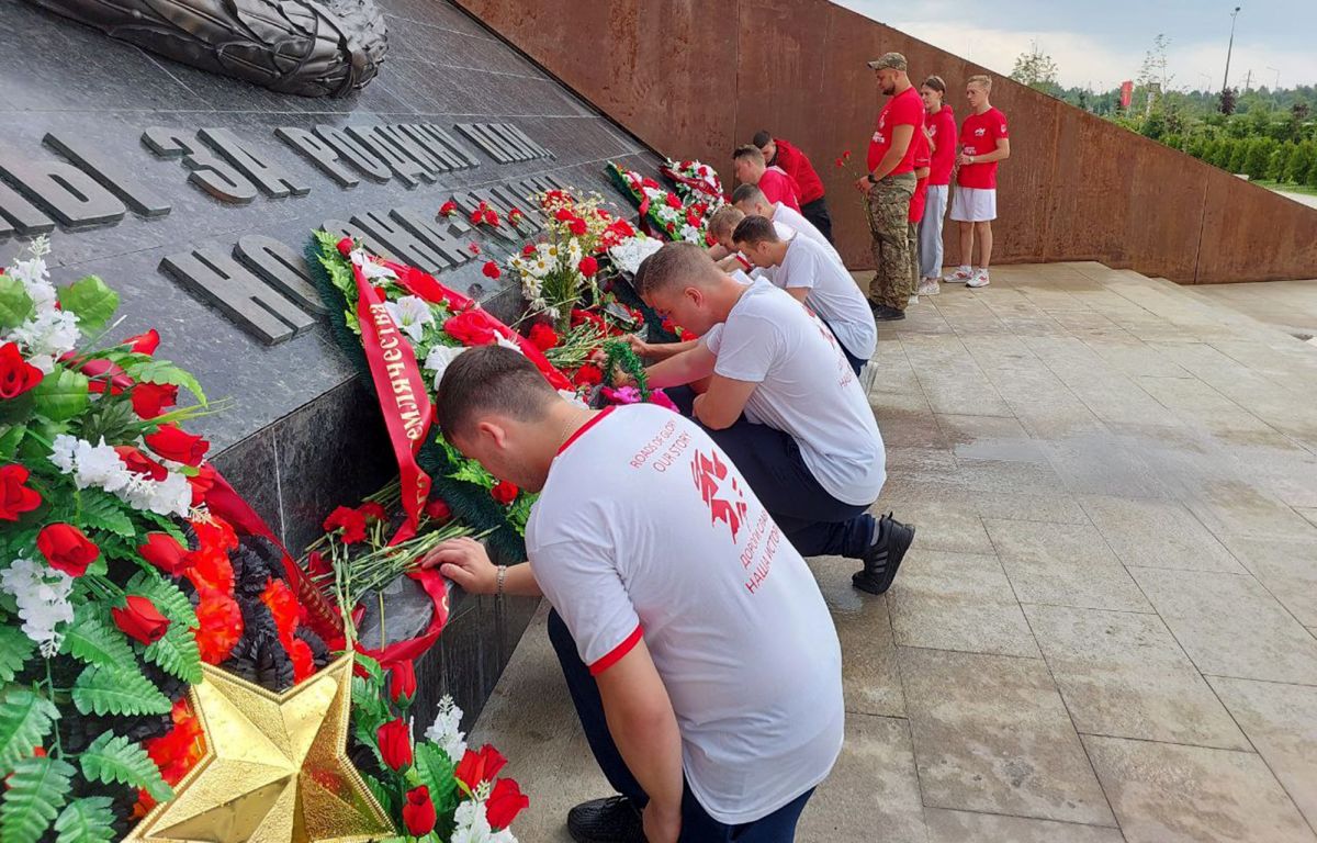 Во Ржеве участники автопробега возложили цветы к Ржевскому мемориалу Советскому солдату и встретились с молодёжным активом военно-патриотического лагеря имени Героя Советского Союза Федора Охлопкова.