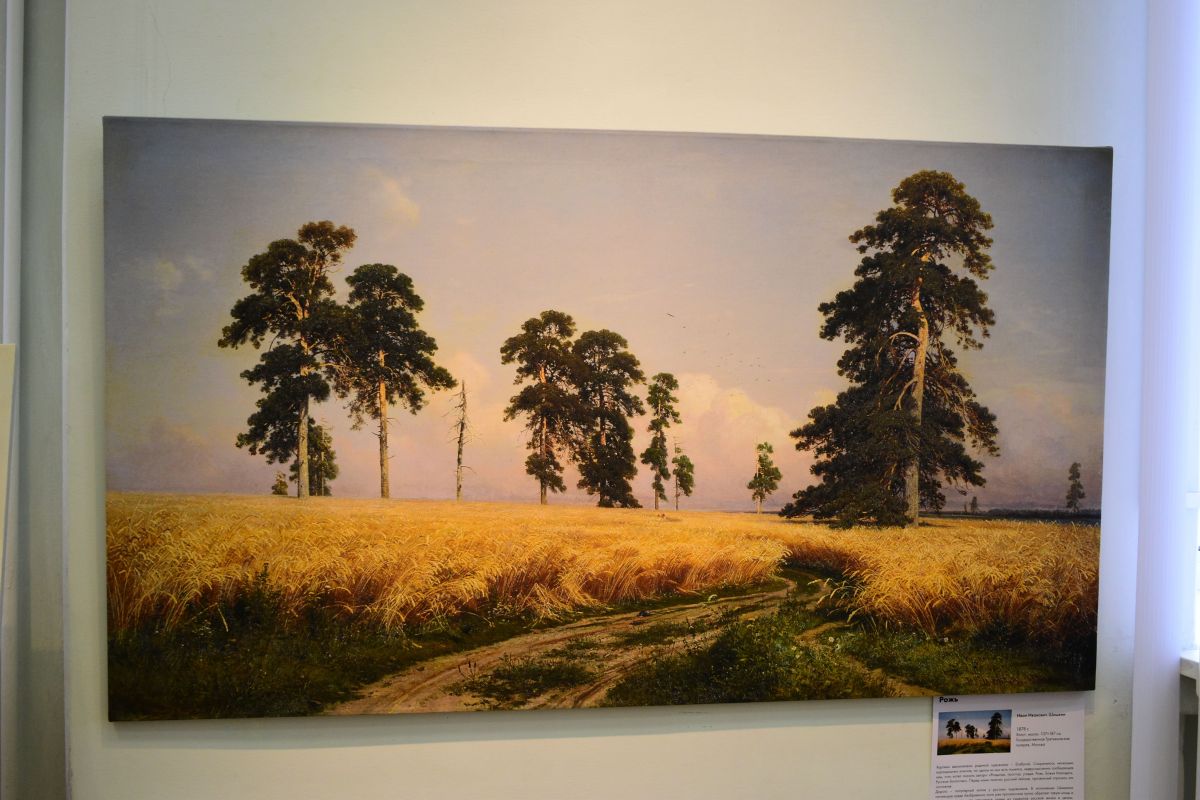 На выставке представлены репродукции известных произведений мастеров искусства: «Иван Грозный и его сын Иван 16 ноября 1581 года», «Бурлаки на Волге», «Девятый вал», «Корабельная роща», «Утро в сосновом лесу», «Приплыли» и другие.