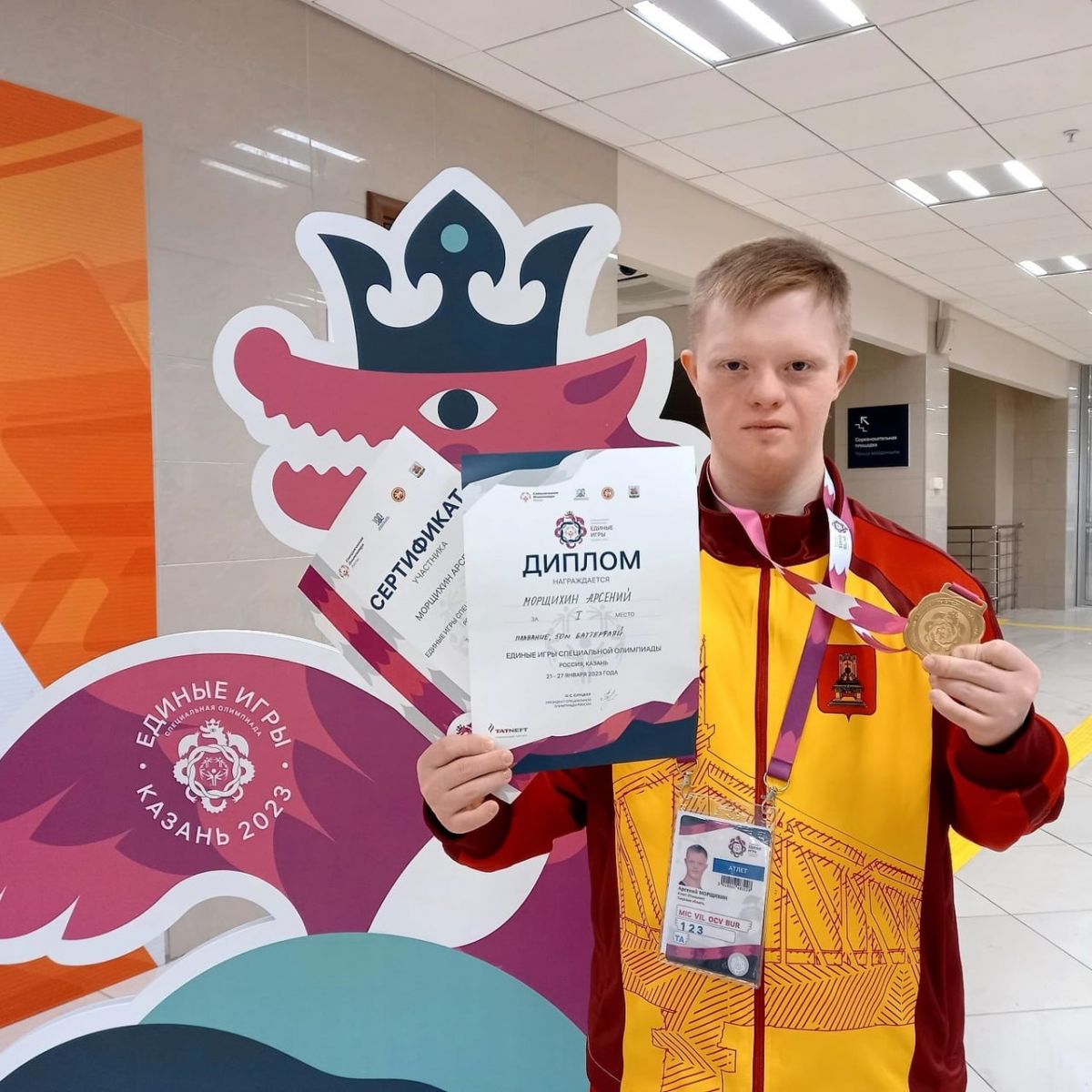 Спортсмен, представляющий на играх Тверскую область, в дисциплине «плавание» занял первое место на дистанции 50 метров баттерфляем и третье место на дистанции 100 метров на спине.