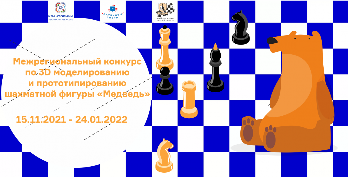 Конкурс состоит из двух этапов. Первый – включает в себя создание 3Д модели шахматной фигуры «Медведь», которая должна быть связана с одноименным представителем из мира животных. Второй этап – это создание четырех шахматных фигур (две белые, две чёрные) с использованием устройств вывода трехмерных моделей.