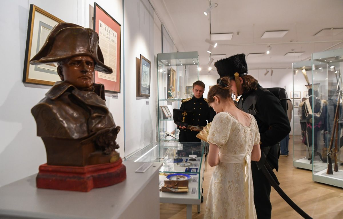 В экспозицию также вошли предметы из фондов Тверского государственного объединенного музея и Студии военных художников имени М.Б. Грекова, относящиеся к первой половины XIX столетия и характеризующие российско-французские отношения той поры. Это гравюры, образцы вооружения и обмундирования, портреты героев Отечественной войны, медали и ордена, автографы Наполеона и Александра I.