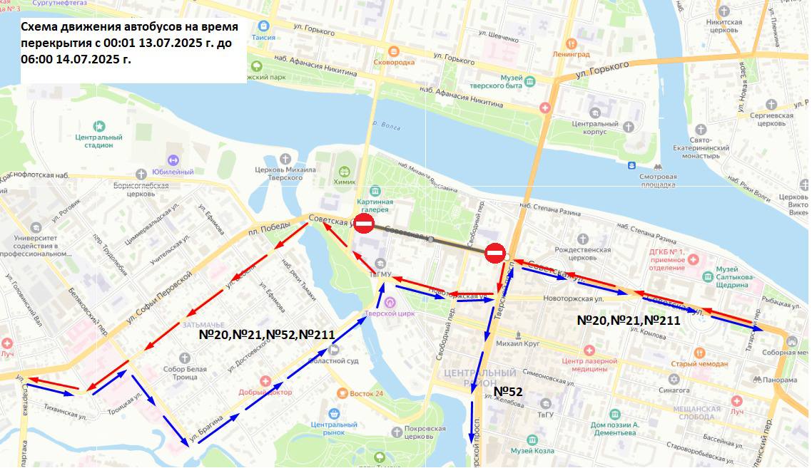 - по улице Советская (на участке от Тверского проспекта до Волжского проезда);