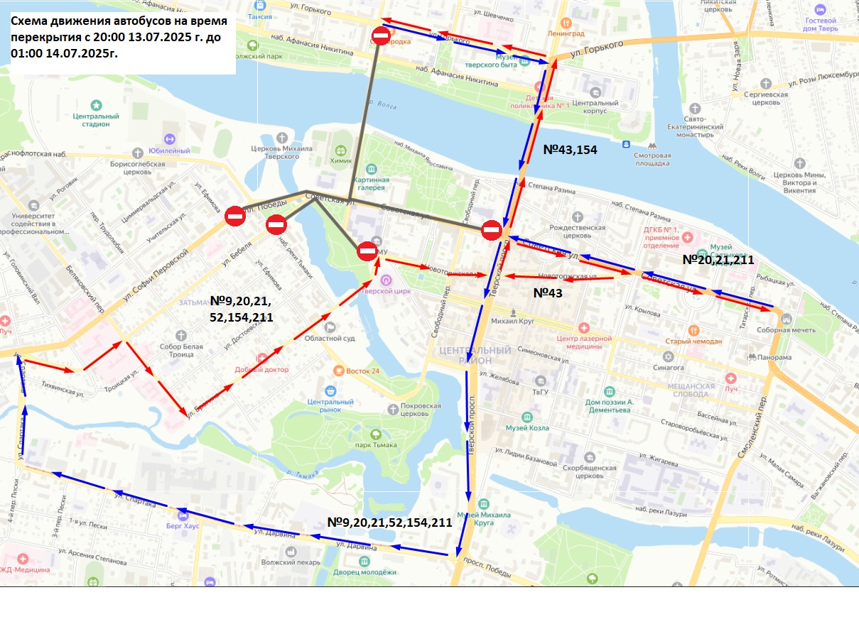 - по набережной Степана Разина (на участке от Тверского проспекта до Свободного переулка);
