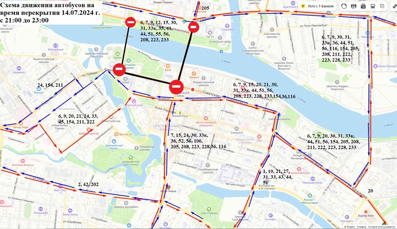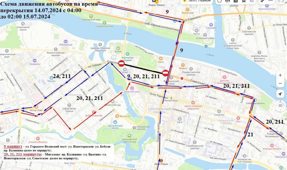 - по Тверскому проспекту, на участке от улицы Советская до Нового Волжского моста;