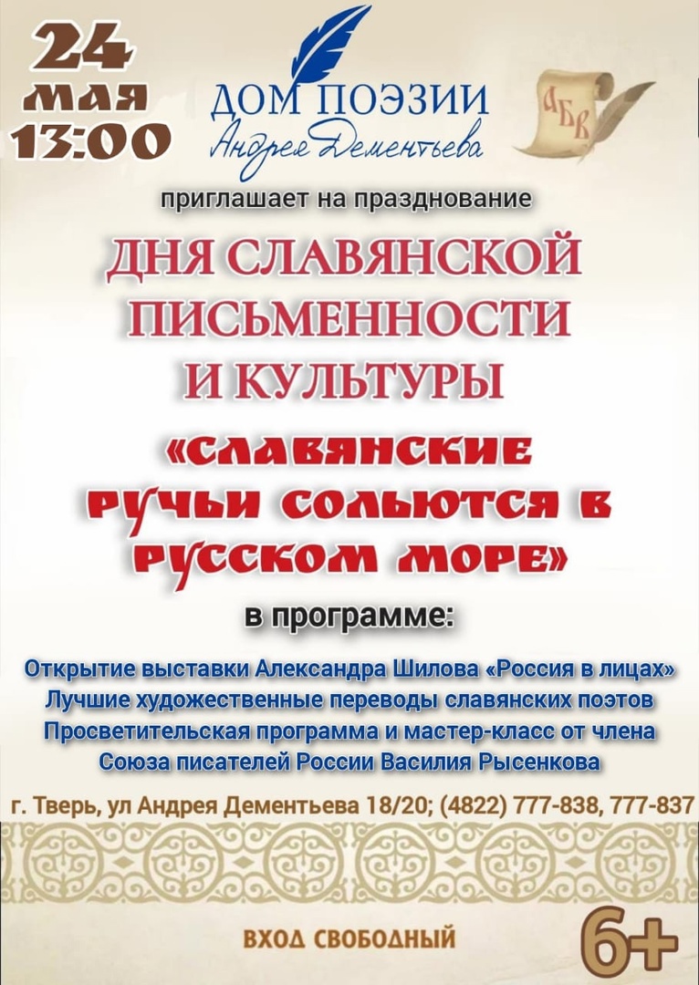 После открытия выставки, в 13:30, пройдёт литературно-поэтическая встреча «Славянские ручьи сольются в русском море» (6+).