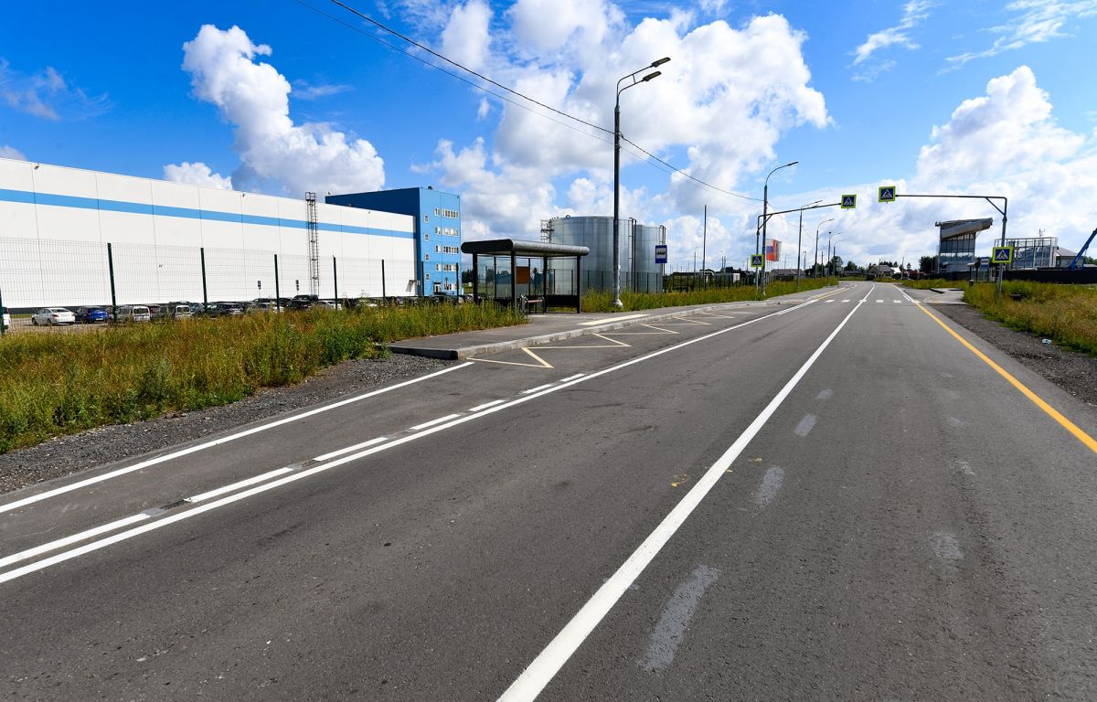 Протяжённость дороги - 0,85 километра. Около логистического комплекса построили раздельные парковки для легковых и грузовых автомобилей, разворотную площадку, остановочные пункты маршрутного транспорта, установили остановочные павильоны, уличное освещение и светофор на съезде с Волоколамского шоссе.