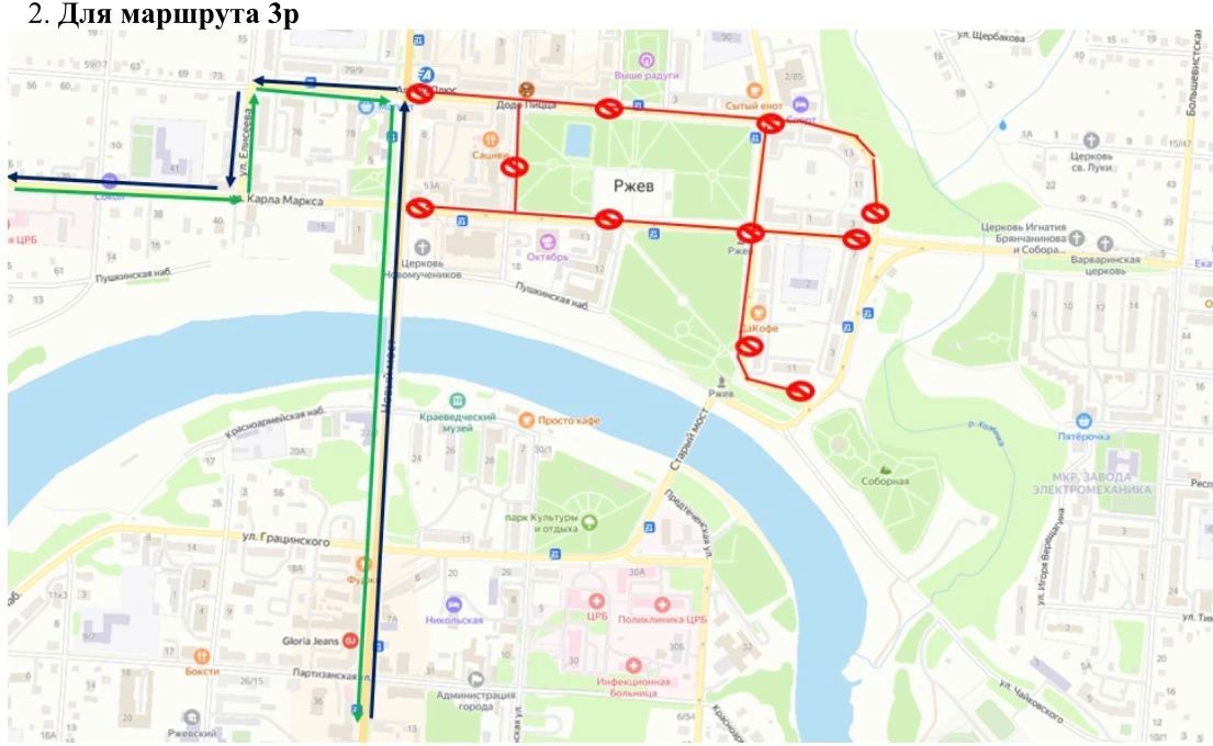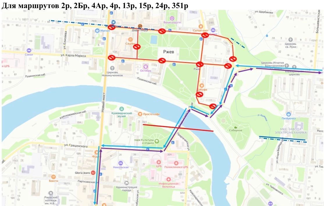 В Ржеве будут изменены схемы движения автобусов №2р, №2Бр, №3р, №4Ар, №4р, №7р, №13р, №15р, №24р, №350р, №351р.