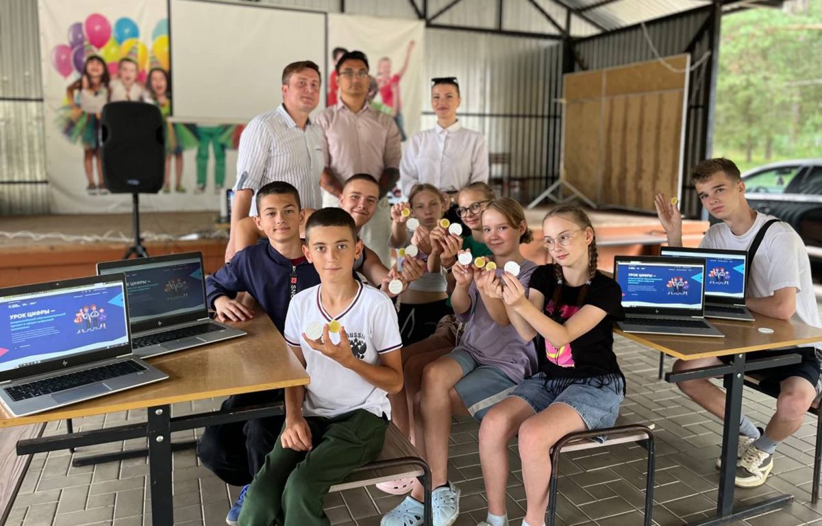 На память об этом дне воспитанникам лагеря вручили золотые значки Цифрового ГТО, символизирующие их знания в области информационных технологий.