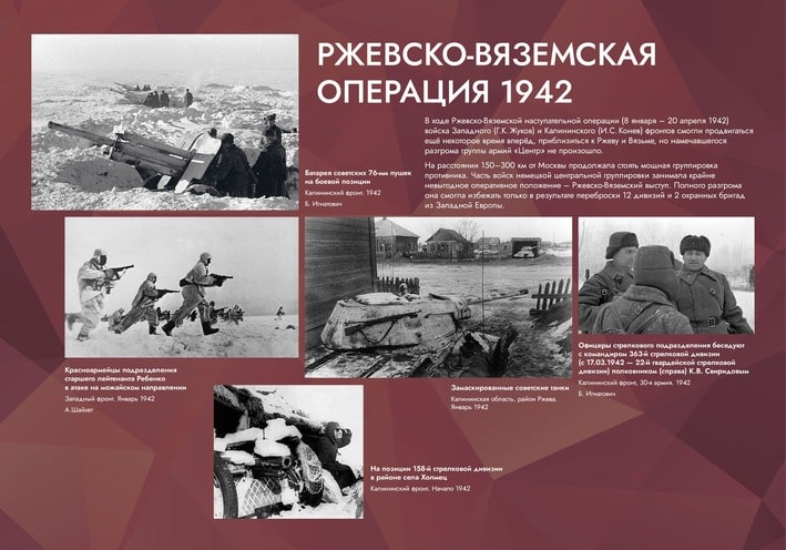 В электронную экспозицию вошло около 130 оцифрованных материалов. Это фотографии с мест боев, портреты героев, плакаты, карты, газеты времен войны, а также рисунки фронтового художника Ивана Царевича из серии «Ефремовская эпопея». Экспозиция состоит из четырех разделов, рассказывающих о хронологии боев в районе Ржевско-Вяземского выступа.