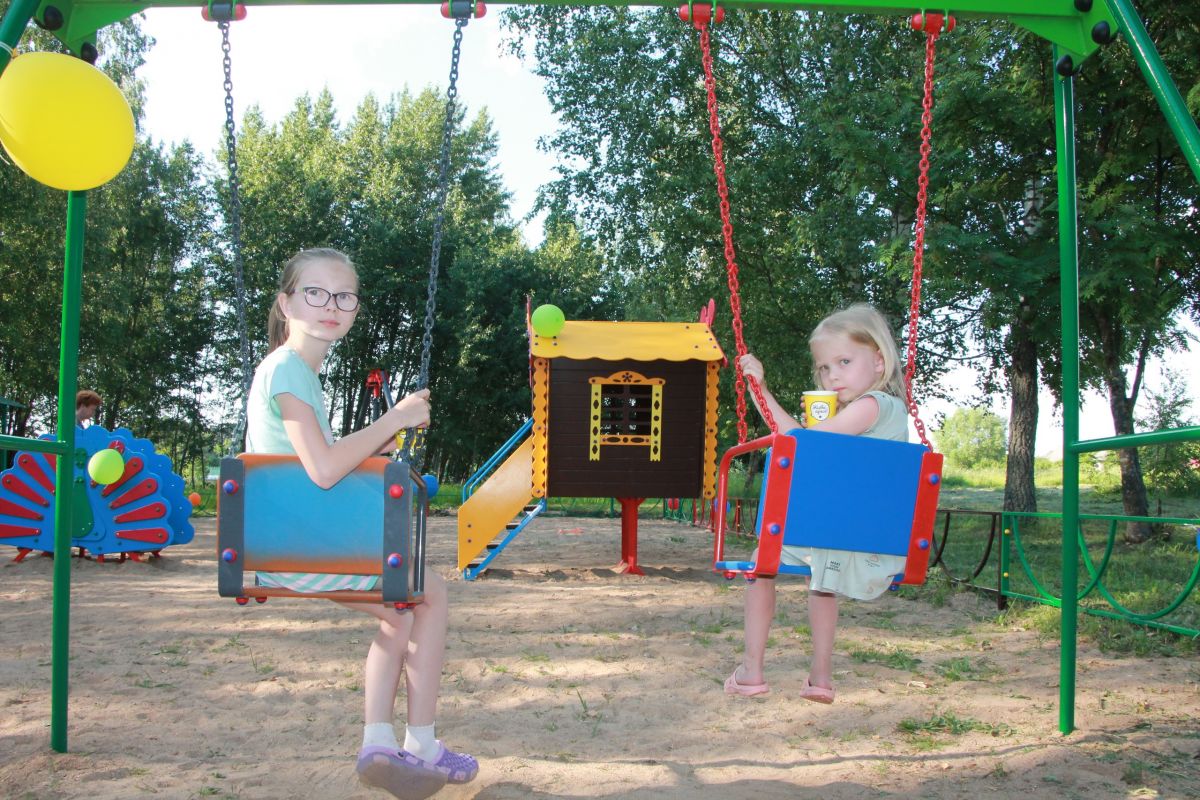 На новой площадке установили различные тренажеры, спортивное оборудование, а для детей – карусели, игровой комплекс, песочный дворик и качели.