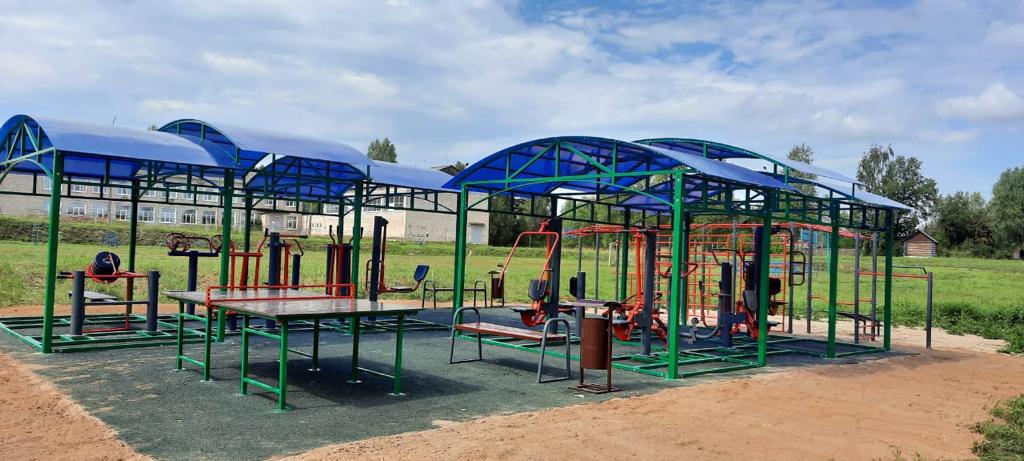 Площадка оборудована резиновым покрытием и включает в себя 20 тренажеров, теннисный стол и место для сдачи нормативов ГТО. А рядом с ней установили гимнастический городок для воркаута с песчаным покрытием.