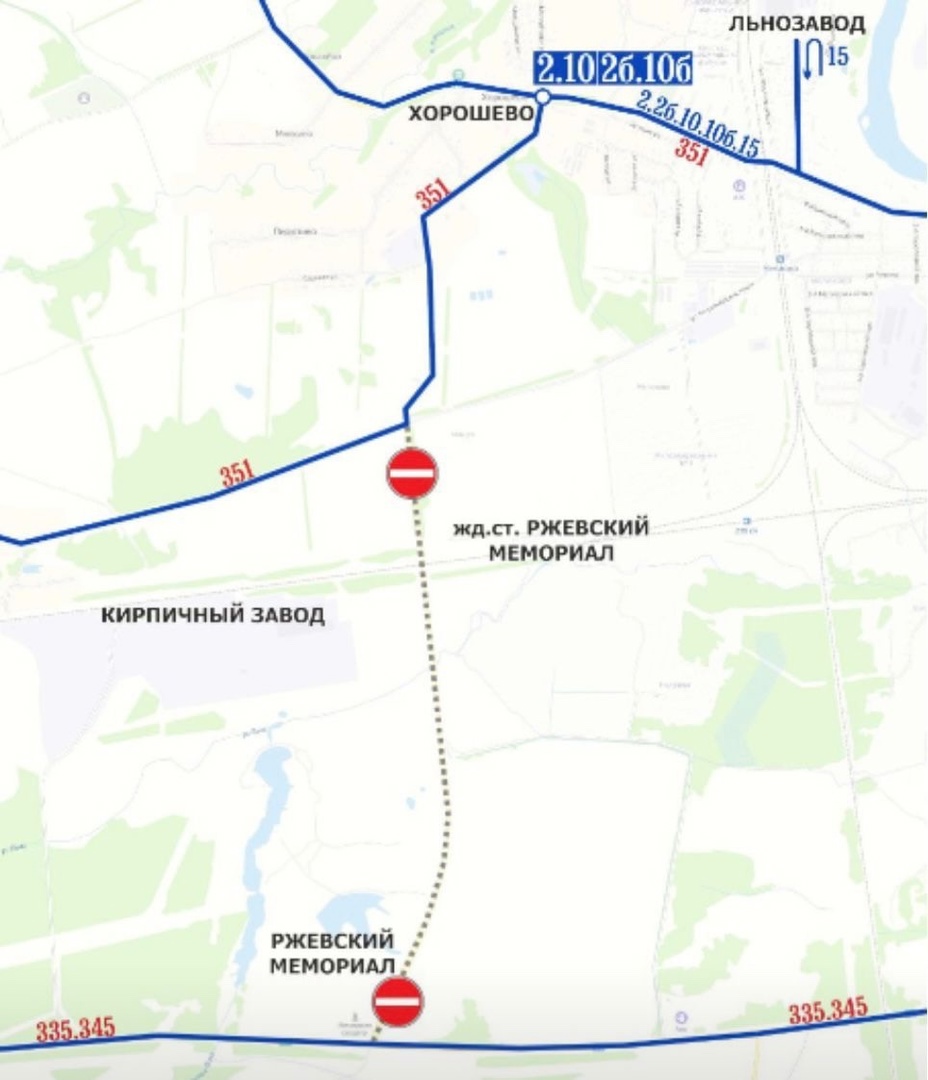 - Маршруты №335р и №345р будут осуществлять движение без заезда на остановочный пункт «Ржевский Мемориал».