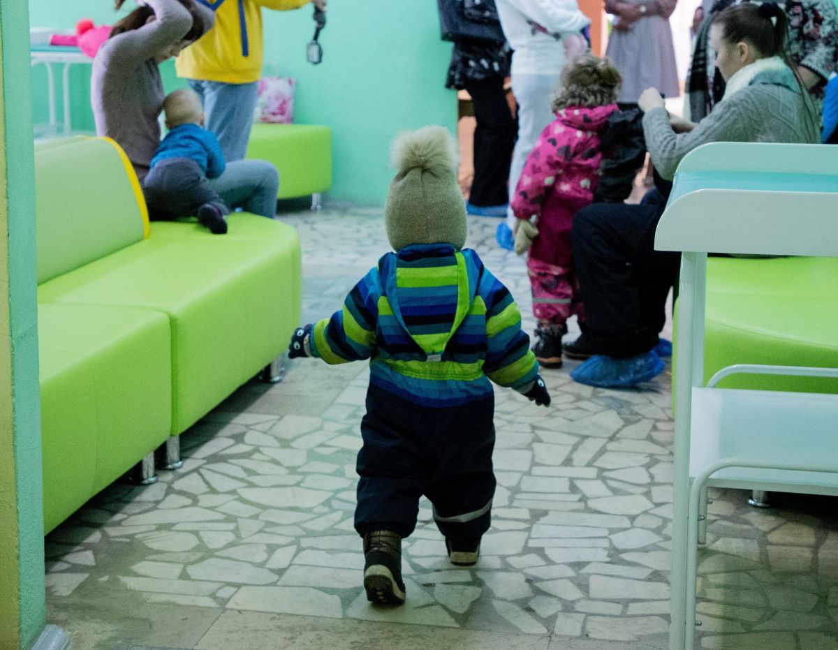 Второй этаж предназначен для кабинетов участковых педиатров, прививочных кабинетов, а также игровых зон для детей.