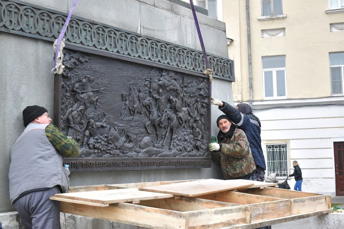Барельефы устанавливают для того, чтобы композиционно завершить оформление памятника, как это и было изначально предусмотрено в проекте.