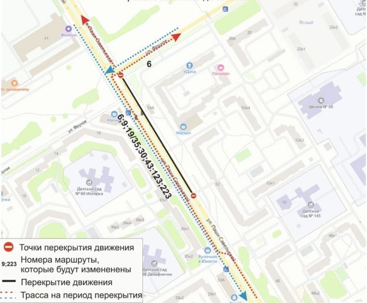 Маршруты №6, №9, №19/35, №30, №43, №123 и №223 будут следовать по изменённой схеме.