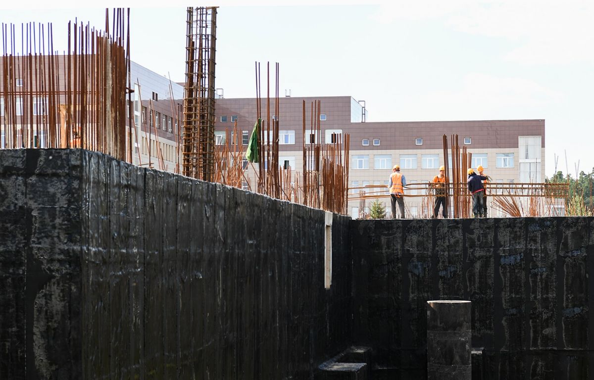На данный момент на объекте полностью выполнено погружение свай, идёт устройство фундамента блока «В», вертикальной гидроизоляции подвала, железобетонных конструкций первого и подземного этажей.