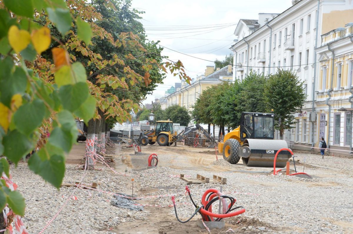 На главной пешеходной улице города подрядчик уже завершил прокладку кабельных линий, выполнена частичная установка водоотводных лотков, залито бетонное основание, установлены колодцы и устроено щебеночное основание под укладку гранитной плитки.