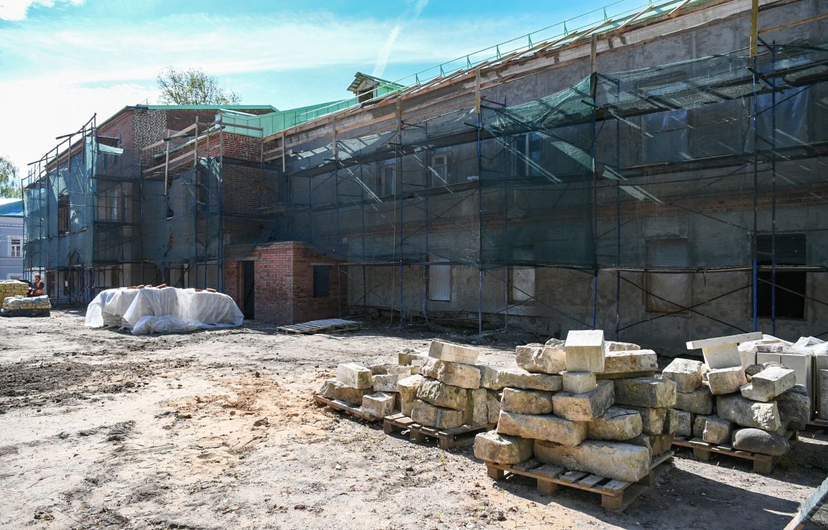 Там уже усилили фундамент и стены, завершается замена кровли. Ведутся фасадные работы, включая восстановление кирпичной кладки, устройство перегородок, замена окон, подготовка помещений к внутренней отделке.