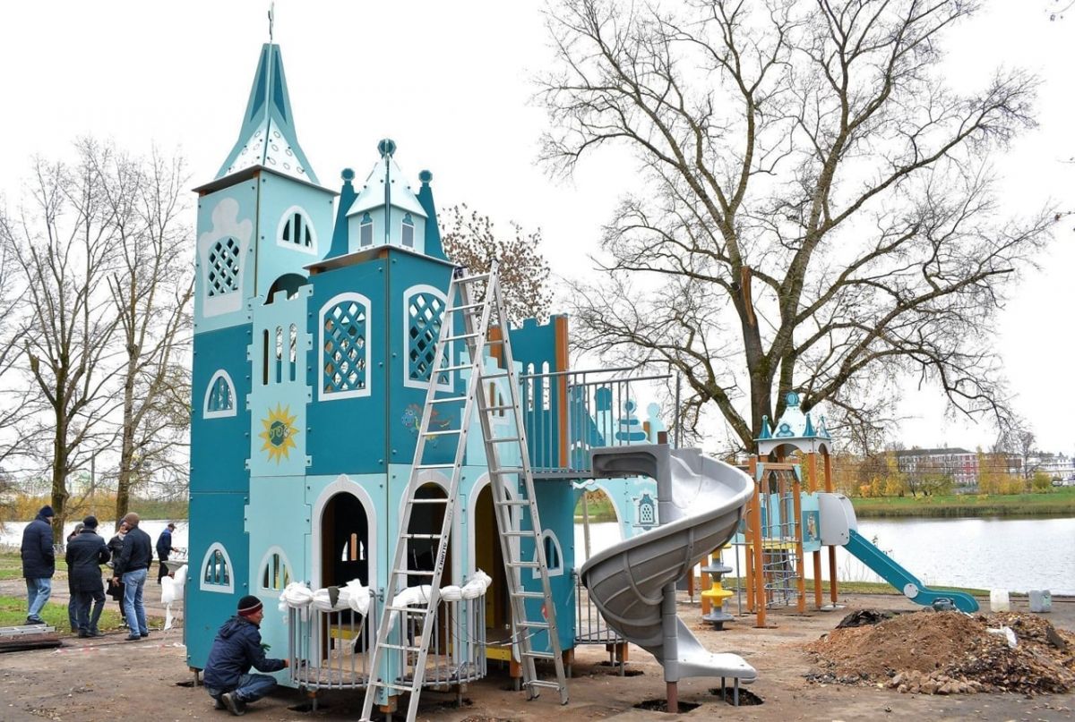 На набережной Афанасия Никитина завершается установка детского замка «Солнечный город», двухсекционных качелей и игрового комплекса «Корабль». Работы в этой зоне отдыха планируют завершить в ближайшее время.
