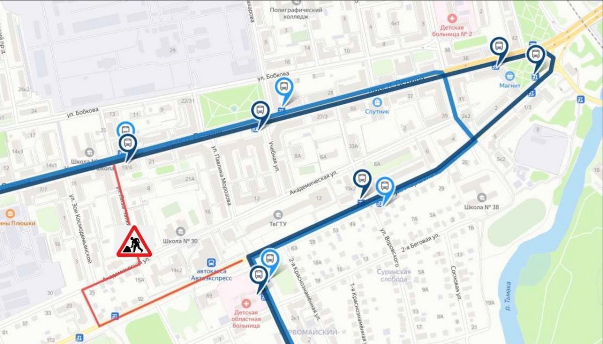 Схема движения автобусного маршрута №12 изменена до завершения работ.