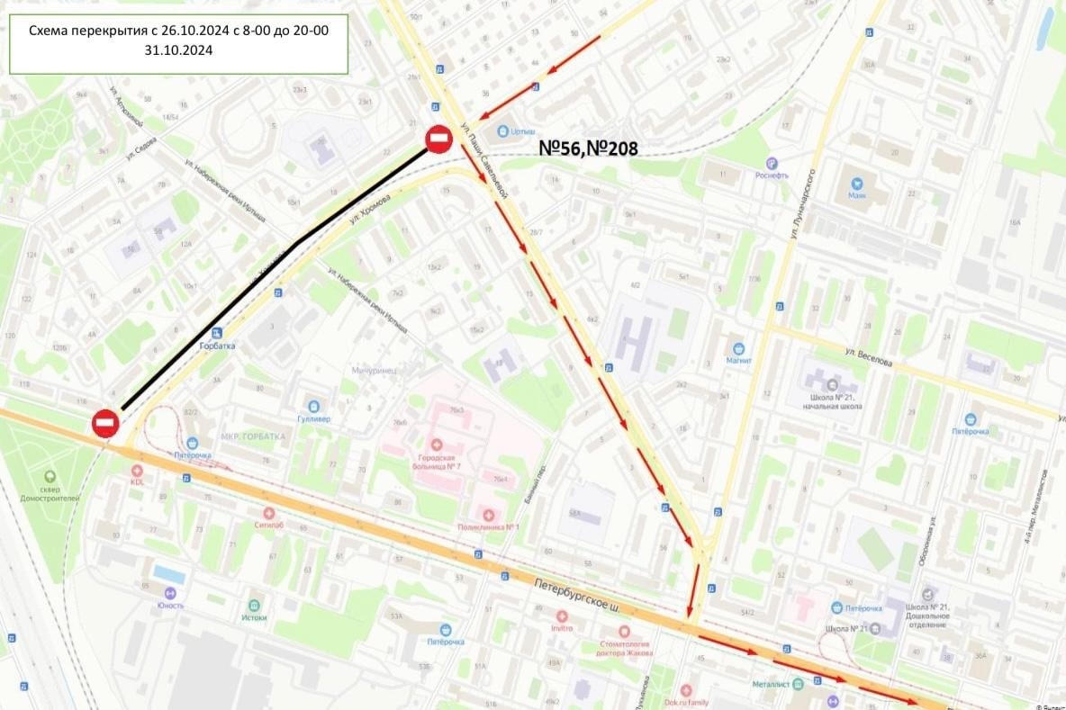 С 8:00 26 октября до 20:00 31 октября в связи с проведением ремонтных работ на четной стороне домов улицы Хромова (на участке от улицы Паши Савельевой до Петербургского шоссе) будет временно ограничено движение транспорта.