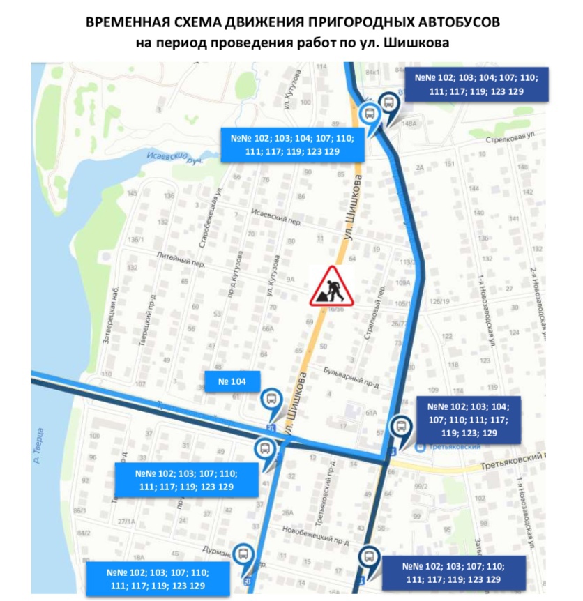 Из-за перекрытия участка временно изменится схема движения некоторых автобусов. Изменения коснутся маршрутов №102, №103, №104, №107, №110, №111, №117, №119, №123 и №129.