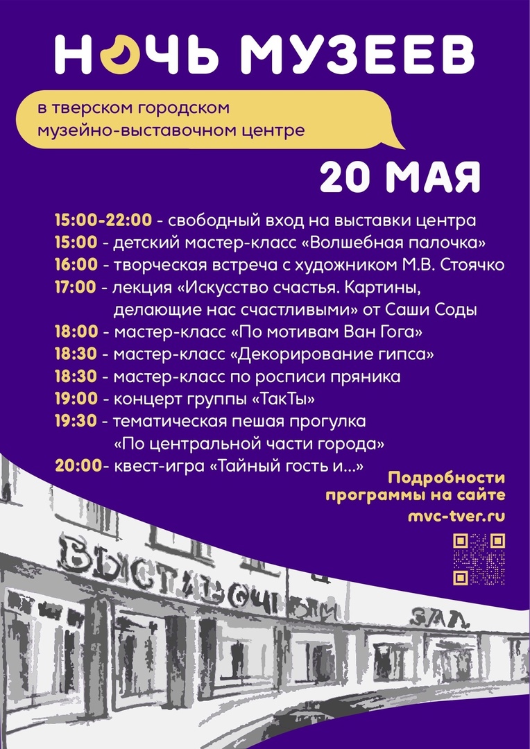 Ознакомиться с программой «Ночи музеев» в ТГМВЦ можно на сайте mvc-tver.ru. Также подробности можно узнать по телефону: (4822) 34-48-52 (добавочный 118).