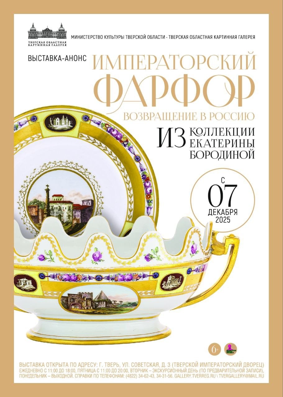 В этот день в Гербовом зале представят выставку-анонс, предваряющую масштабную экспозицию императорского фарфора, открытие которой запланировано на 2026 год, когда в исторических залах дворца покажут больше 200 произведений последней четверти XVIII - начала XX века. На выставке-анонсе уже можно будет увидеть больше 30 предметов искусства, которые обозначат ряд направлений будущей экспозиции.
