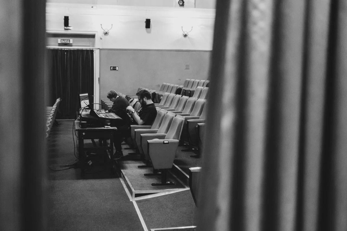 Кроме того, в фойе театра можно увидеть репортажную съемку Руслана Кирсанова. Это черно-белые кадры с репетиций, тренингов и занятий, удивительная закулисная жизнь театра и даже ночной ТЮЗ.