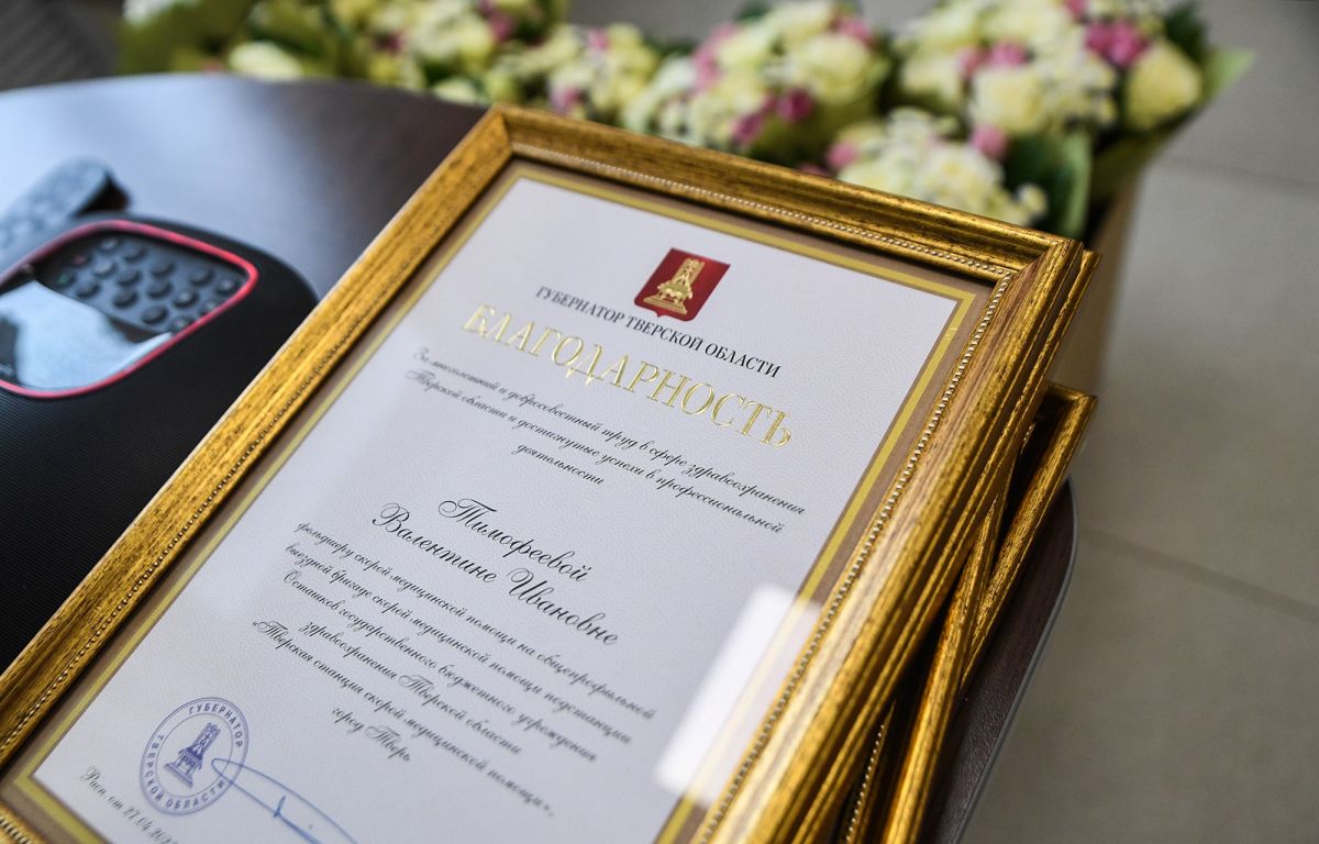 Почетной грамоты губернатора Тверской области удостоена старший фельдшер Бежецкой подстанции Наталья Данилова. Благодарность главы региона объявлена старшему врачу Тверской станции скорой медицинской помощи Татьяне Денисовой, фельдшеру скорой медицинской помощи из Бежецка Елене Каленюк, фельдшеру подстанции № 1 Тверской станции СМП Наталии Проценко и фельдшеру Осташковской подстанции Валентине Тимофеевой.