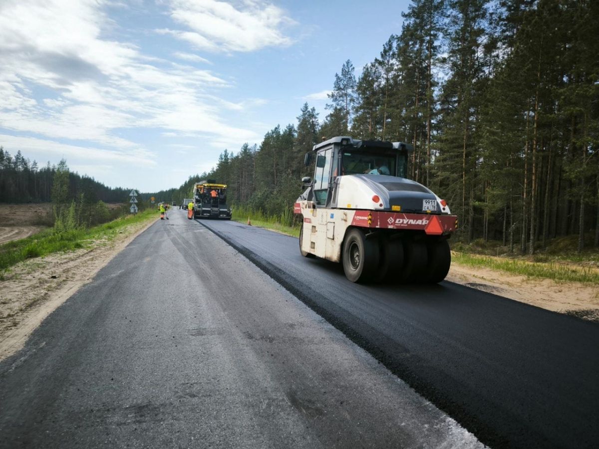 Протяженность ремонтируемого участка - 46 километров. Контракт предусматривает поэтапный ремонт с завершением в 2026 году. Но подрядчик уже укладывает асфальтобетонное покрытие на участке ремонта следующего года. Также на дороге укрепляют обочины и устанавливают дорожные знаки.