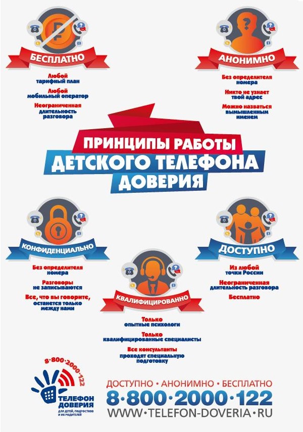 Работа ведется круглосуточно без выходных и праздничных дней. Звонок бесплатный. Дополнительную информацию о работе линии можно узнать на сайте telefon-doveria.ru