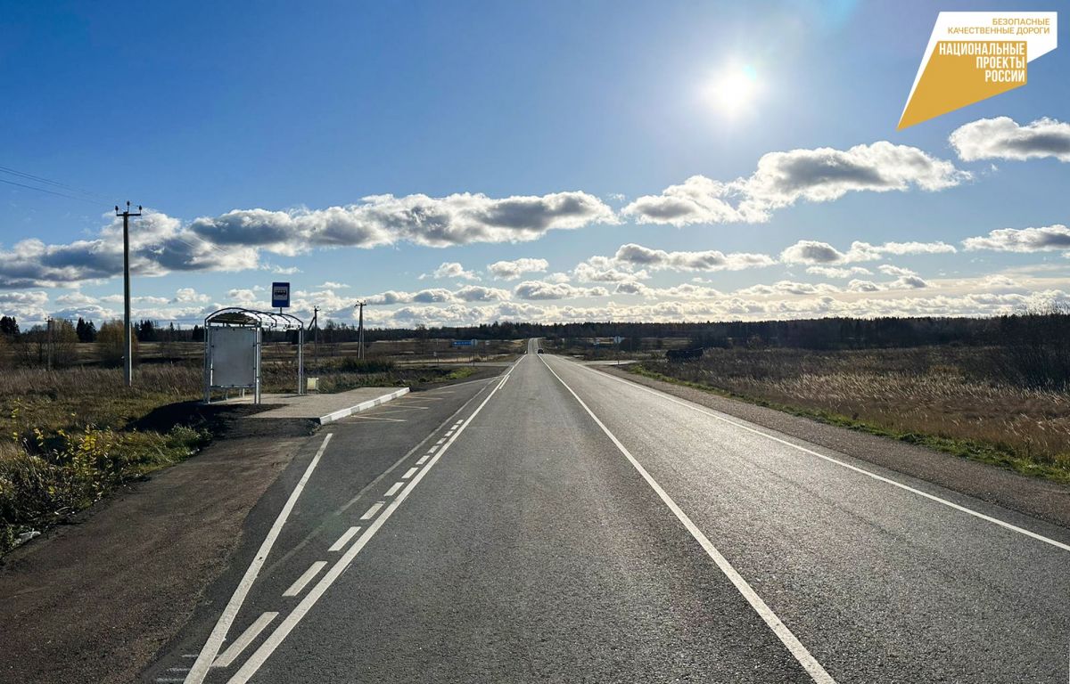 На дороге расчистили полосу отвода от кустарника и мелколесья, устроили новое асфальтобетонное покрытие проезжей части, а на мосту через реку Шошу заменили покрытие и отремонтировали деформационные швы.