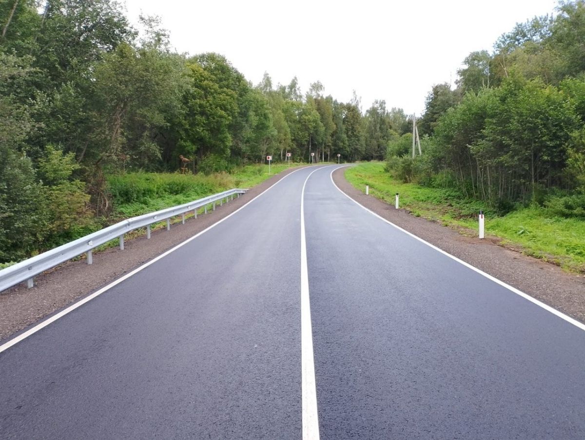 Также на участке укрепили обочины, установили знаки и барьерное ограждение, нанесли разметку термопластиком, а в деревне Молозвино обустроили искусственные дорожные неровности.