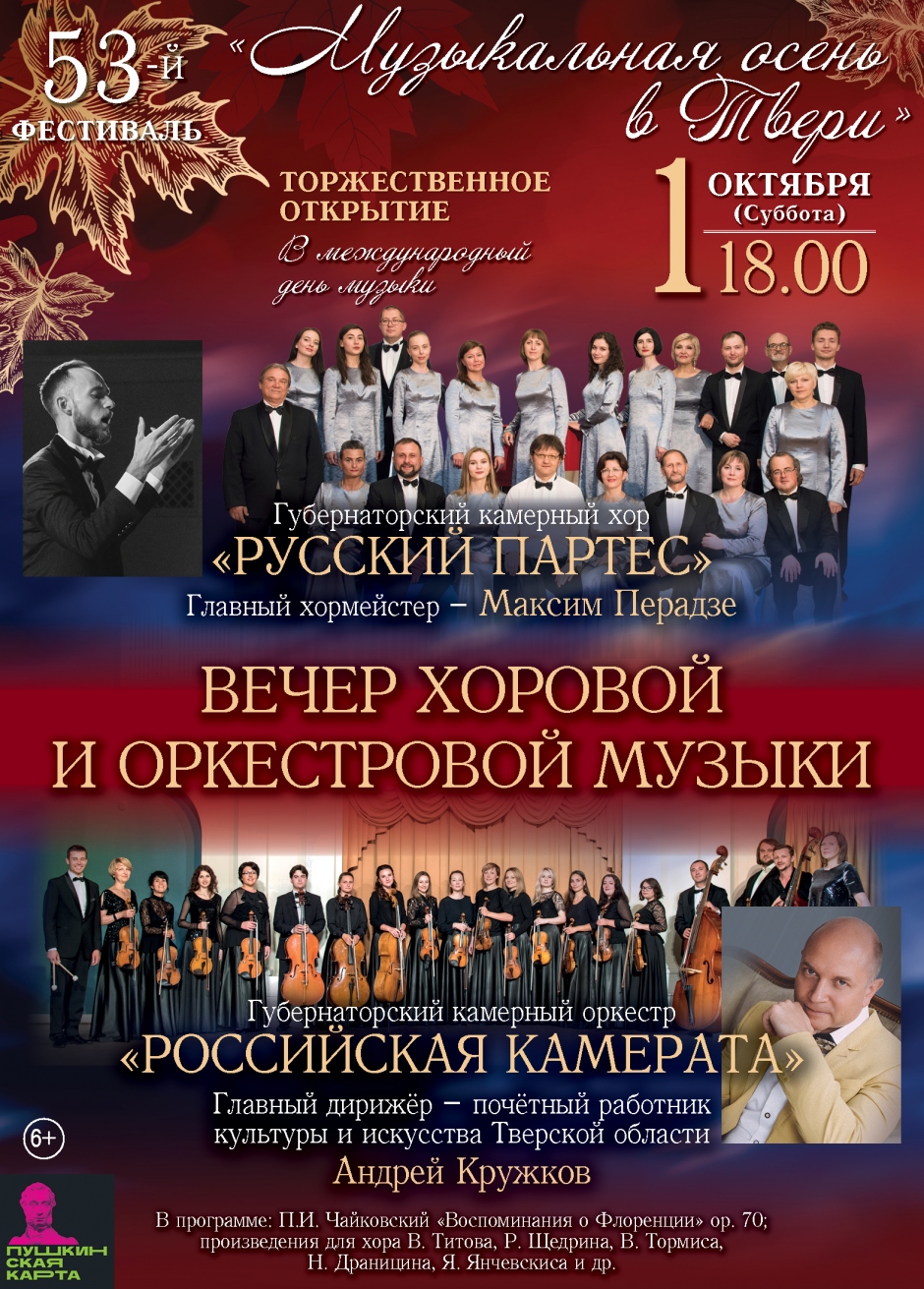 Торжественное открытие фестиваля пройдёт 1 октября в 18:00. Зрителей ждёт вечер хоровой и оркестровой музыки (6+). На сцене филармонии выступят Губернаторский камерный хор «Русский партес» и Губернаторский камерный оркестр «Российская камерата».