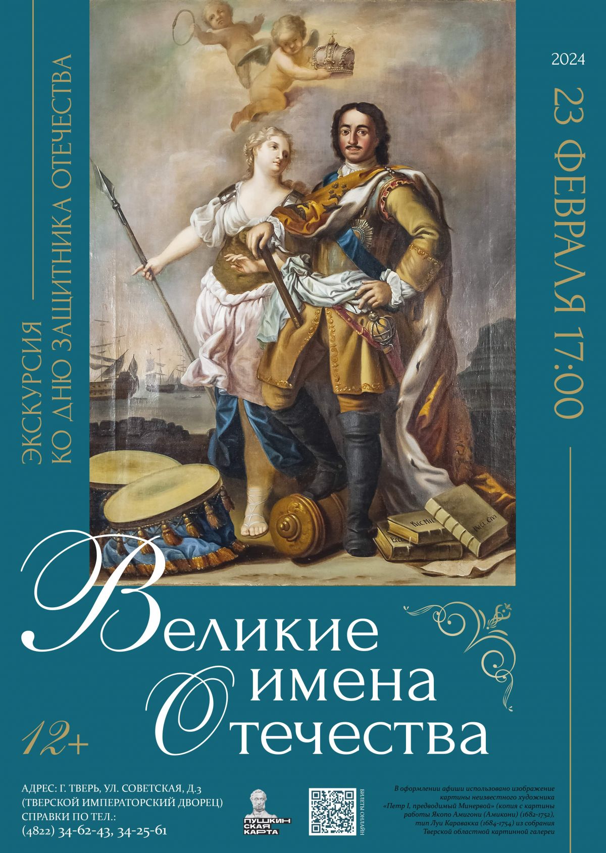 Посетителей ждёт путешествие по экспозиционным залам Тверской областной картинной галереи, где они смогут познакомиться с иконами и портретами славных героев прошлого — Александра Невского, Михаила Ярославича Тверского, Петра I и Александра I, узнать об их судьбах и о событиях 1812 года, связанных с историей дворца.