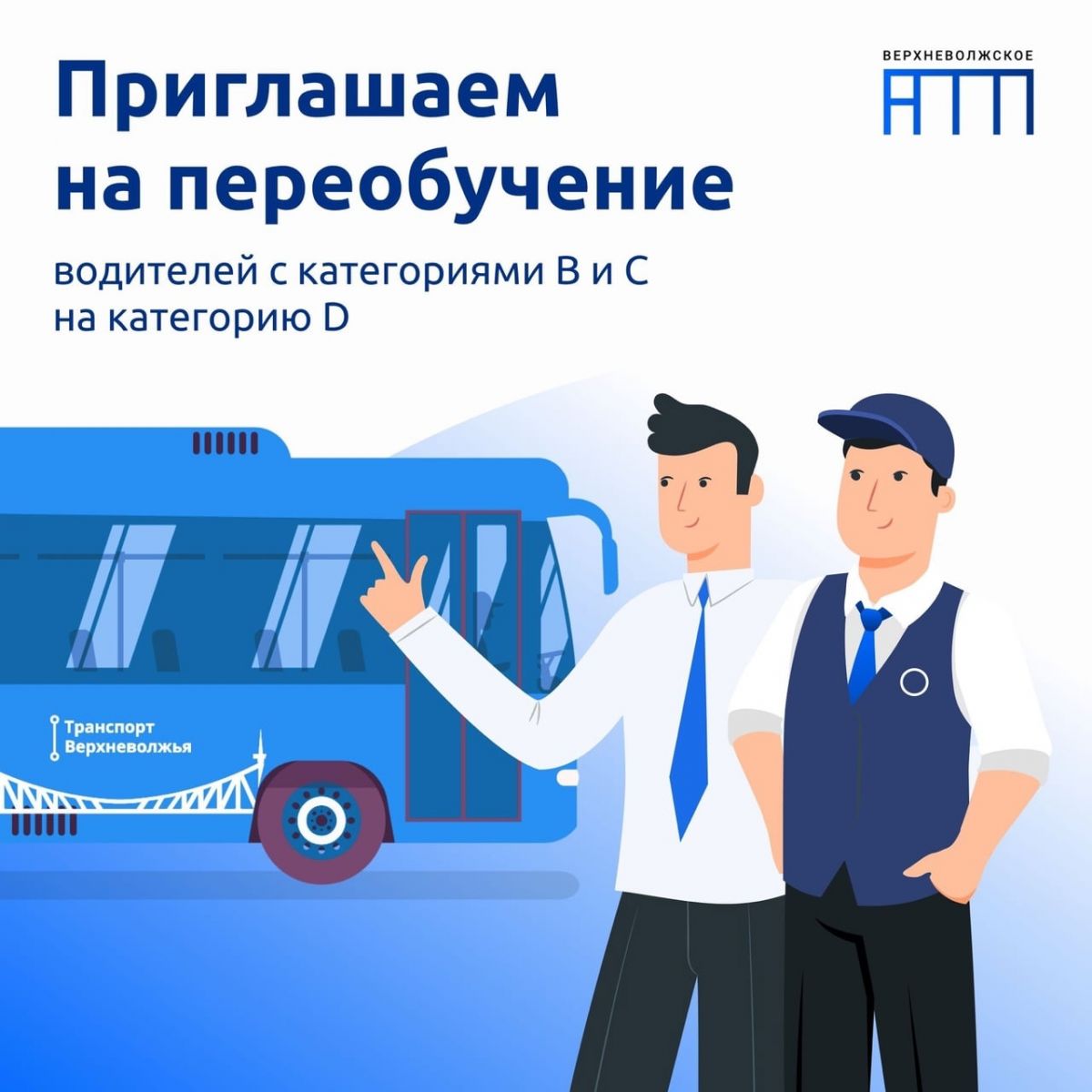 После прохождения теоретического и практического обучения в автошколе и получения категории D ученик дополнительно сдает внутренние экзамены в «Верхневолжском АТП» по правилам дорожного движения и вождению. Успешное прохождение аттестации гарантирует абитуриентам место в штате организации в должности водителя автобуса.