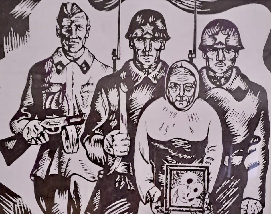 В экспозиции представлены графические работы весьегонского художника, члена Союза художников России Вячеслава Розмина, рассказывающие о жизни простого русского солдата, прошедшего через все тяготы войны, судьбах детей войны, солдатских матерей и отцов.