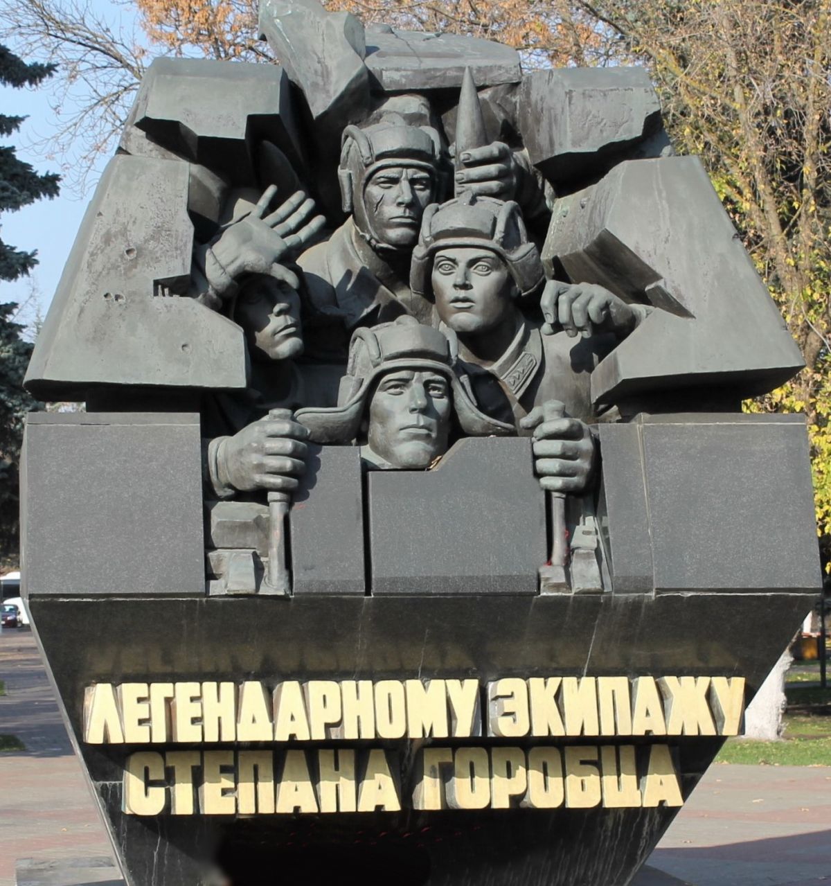 Памятник экипажу танка «Т-34» под командованием Степана Христофоровича Горобца был открыт 29 ноября 2011 года в сквере на Комсомольской площади. С началом работ по строительству Западного моста мемориал был временно демонтирован.